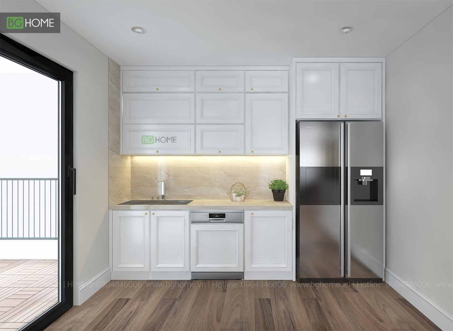 Tủ bếp MDF BGHOME lắp đặt tại Vinhomes cho gia đình chị hà là mẫu tủ bếp module MDF bao gồm: